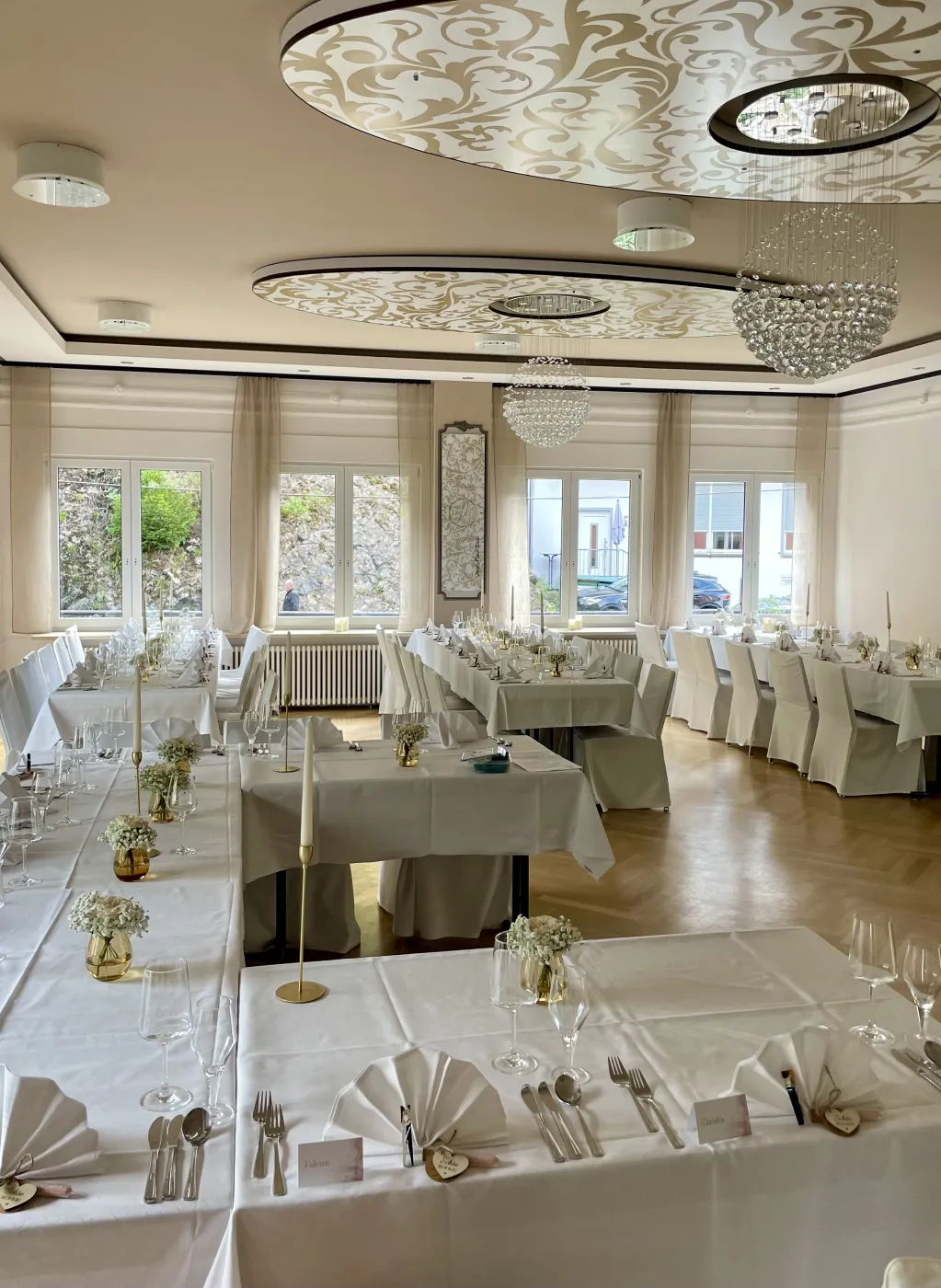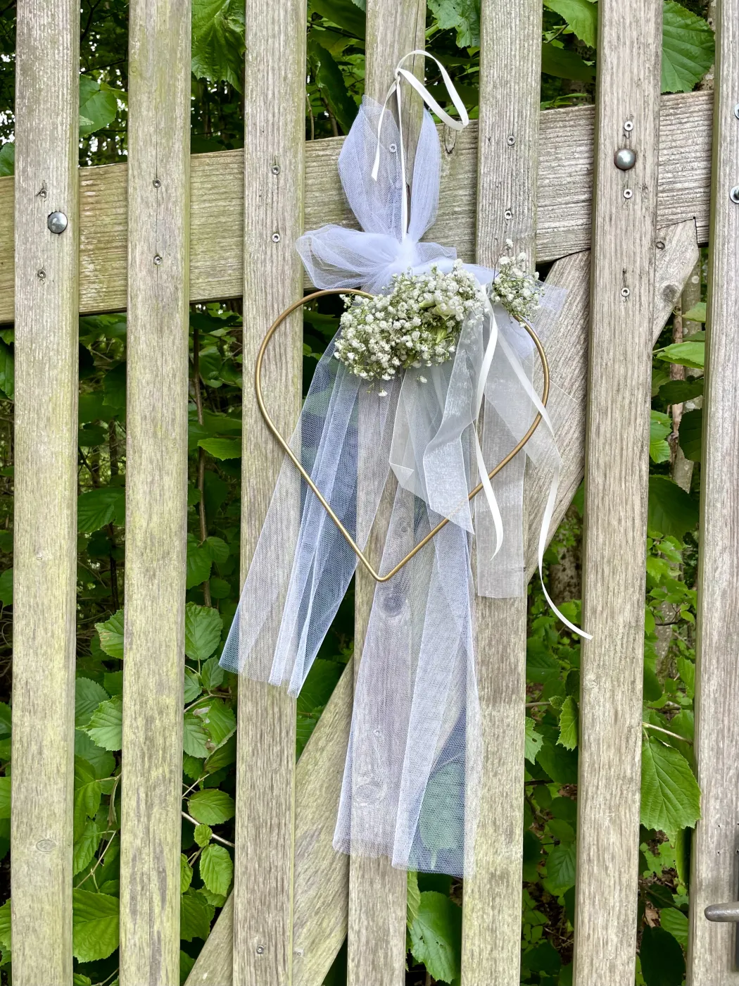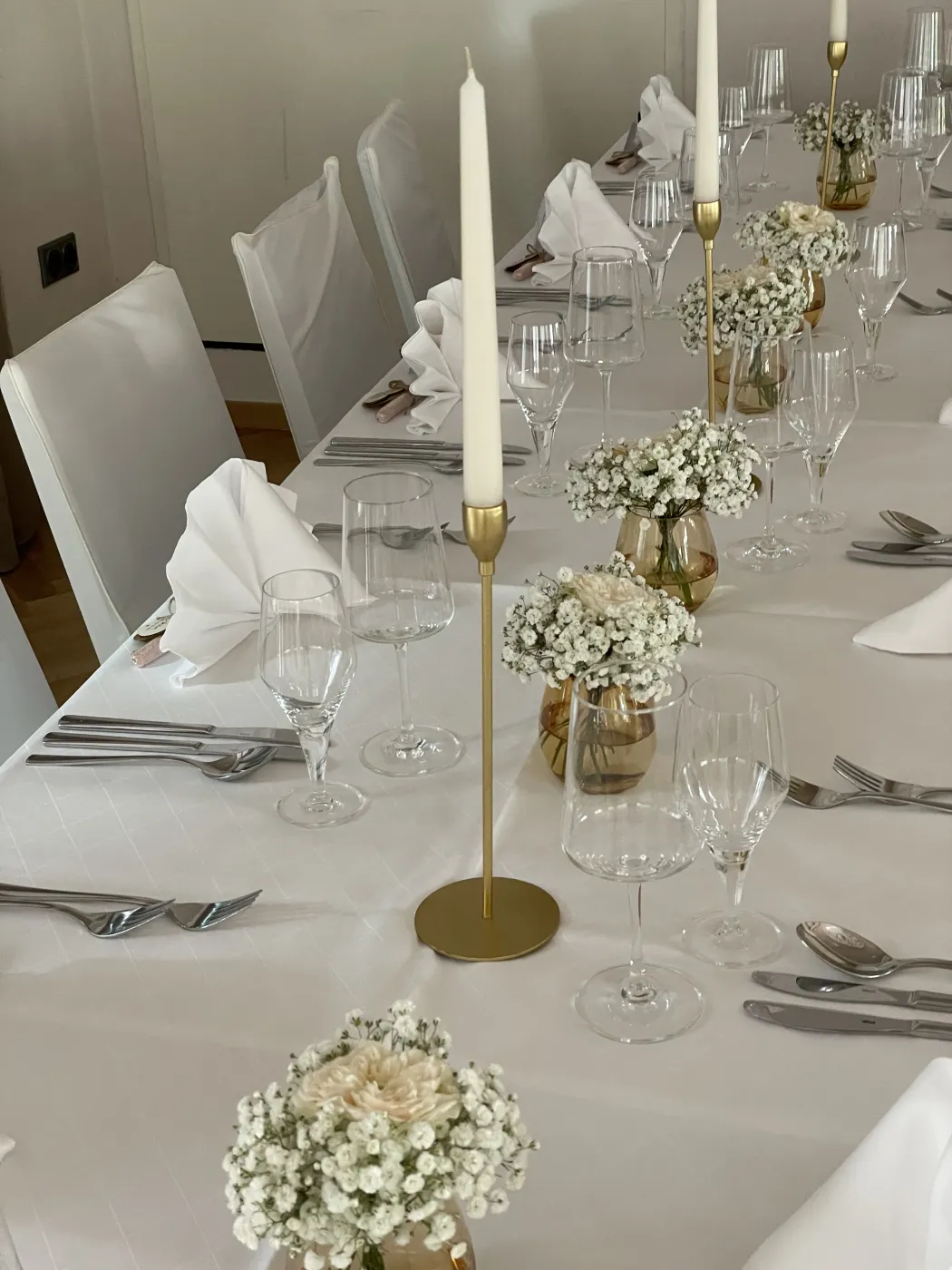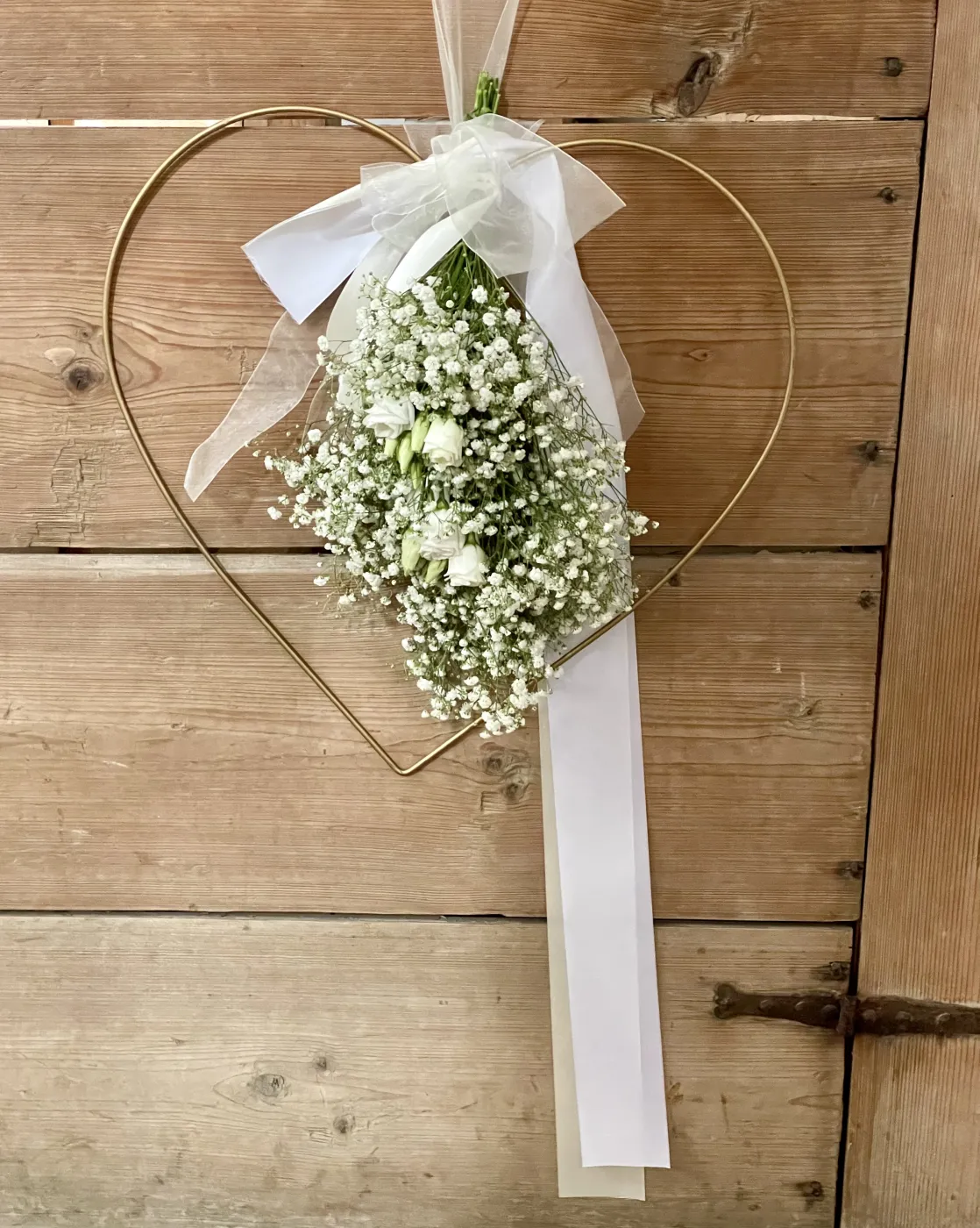 Hannah und Florian mit Schleierkraut gepaart mit Creme und apricotfarbenen Blüten. Eine wunderschöne Hochzeitstrauung in der Burgkapelle und anschließender Feier.